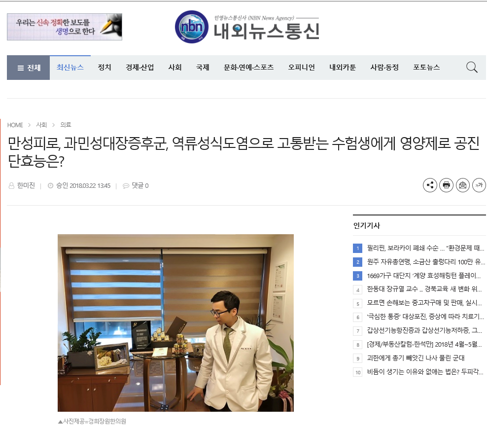 제목 <내외뉴스통신 NBN >만성피로, 과민성대장증후군, 역류성식도염으로 고통받는 수험생에게 영양제로 공진단 효능은?